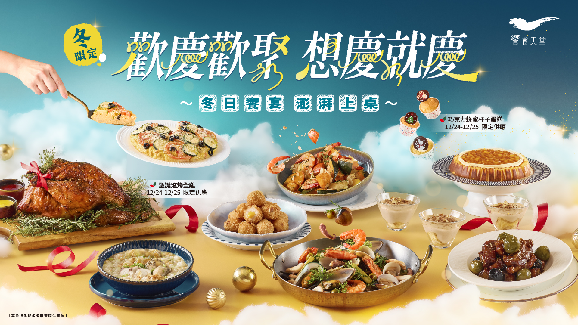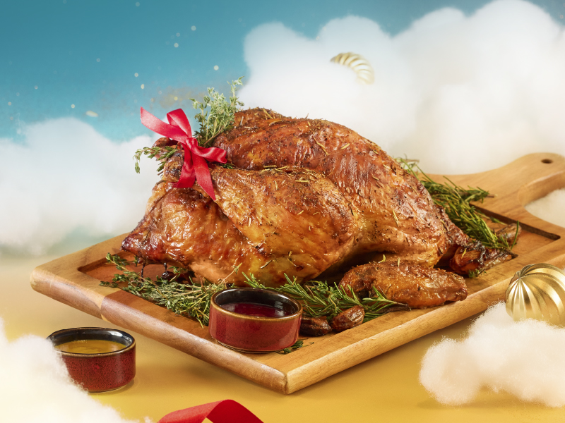 高溫爐烤烤全雞,以特製香料均勻搓揉後高溫烘烤,外皮酥脆、肉質鮮嫩多汁,香氣撲鼻的聖誕饗宴。