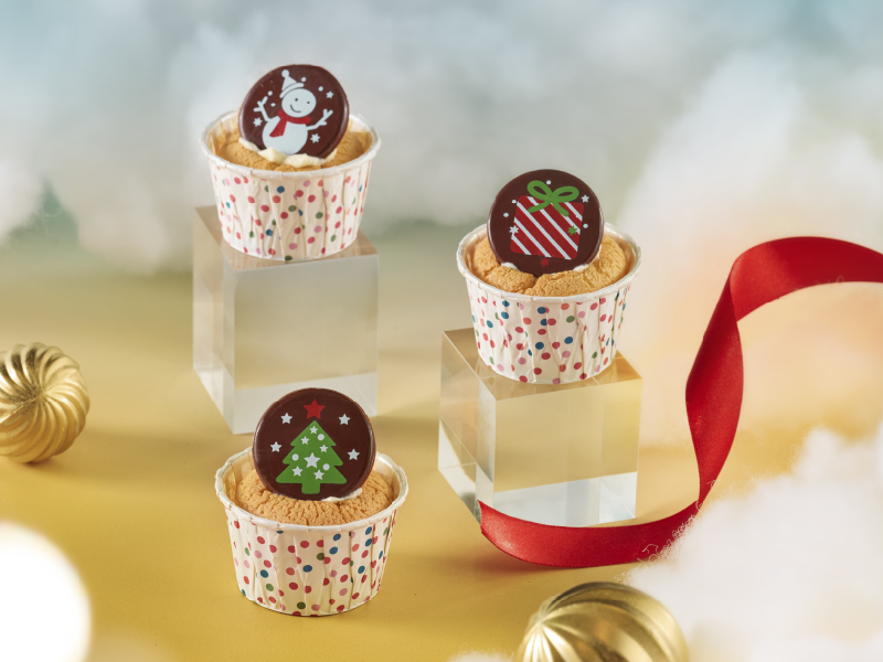 鬆軟的蜂蜜蛋糕以聖誕巧克力飾片及鮮奶油點綴,造型小巧可愛,品嚐屬於自己的節慶喜悅。