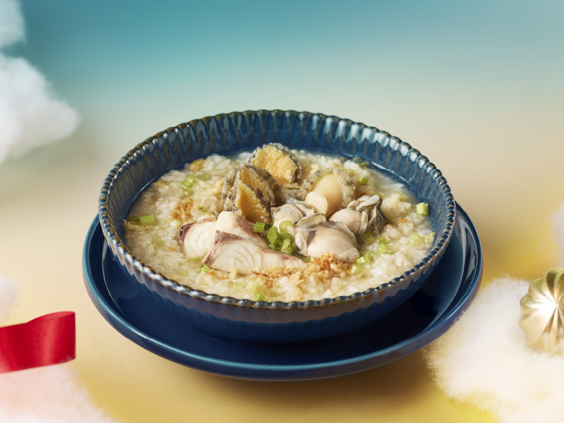以鮮美高湯熬煮白粥為底,加入干貝絲、鮑魚、蚵仔與鯛魚片等豐富海味,鮮甜交融,完美呈現大海的極致鮮香。