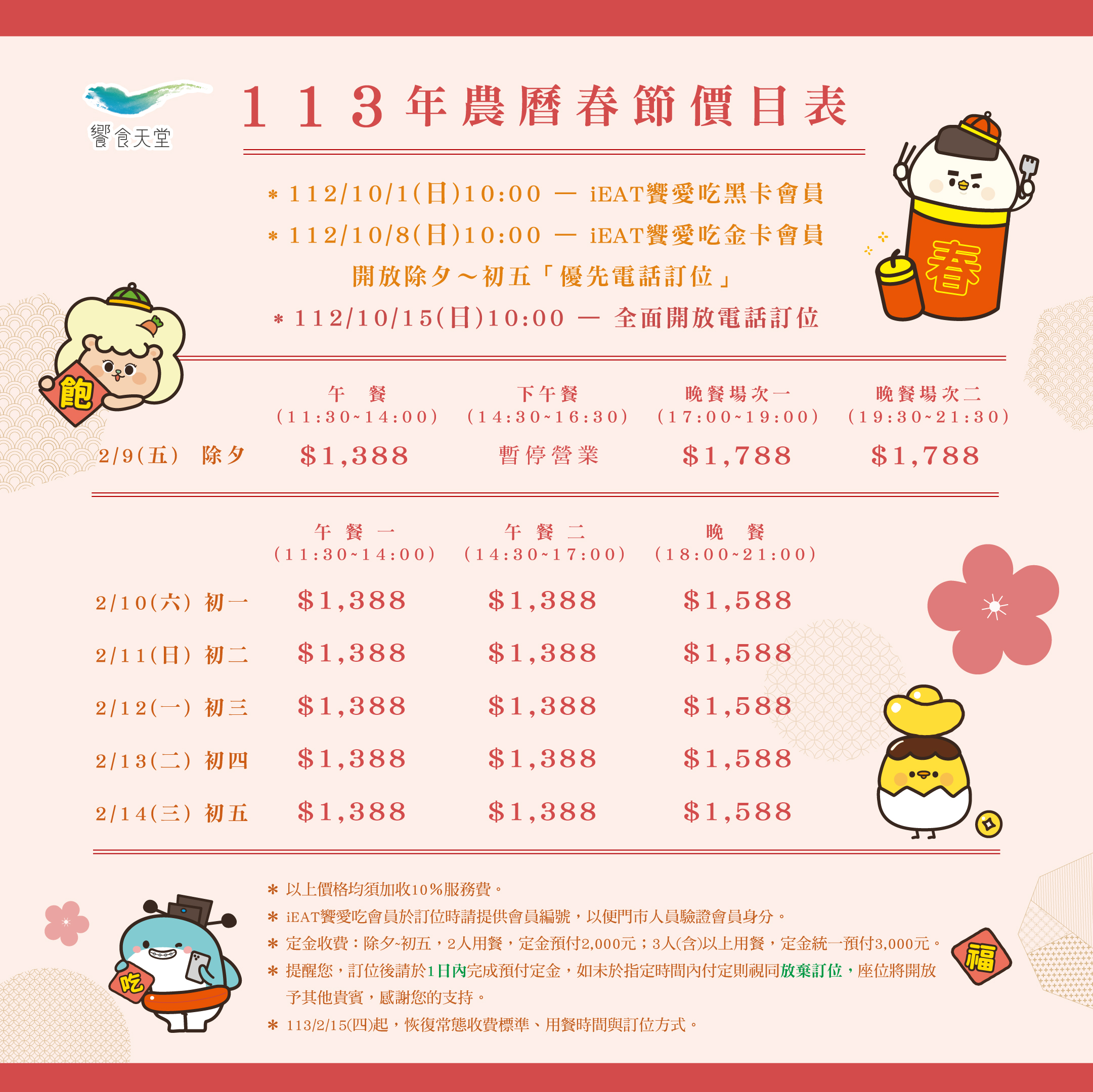 🧧除夕~初五訂位: