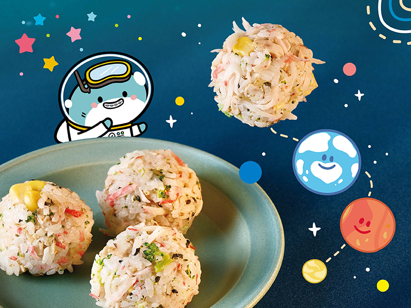 雞肉、蟹味絲和蔬菜做成圓滾滾的小飯糰,一口一個剛剛好,讓吃飯變得更有趣!