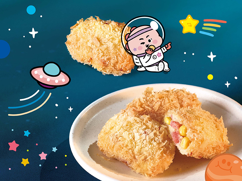 小小薯球裡藏著司絲、玉米和火腿丁,外皮炸得金黃酥脆,一口咬下去,酥酥的外皮搭配綿綿薯泥,超級滿足!